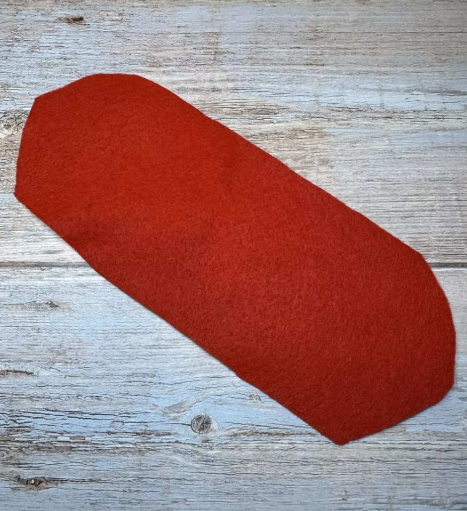 First cut one of your pieces of felt into a sort of long oval. I like to use the full width of the felt and just curve the ends. You don’t have to measure anything but my pieces are about 4 inches/ 10 cm wide. The curved part will the the top of your heart.