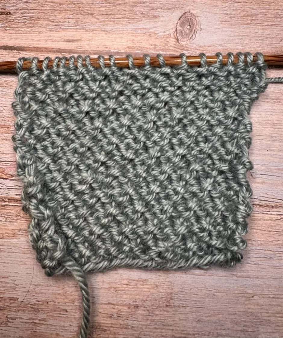 Sand stitch is a fun and easy knitting stitch pattern that looks great on both sides and doesn’t curl. It’s an easy four-row repeat, and only two of the rows have any pattern to them. Let’s check it out!