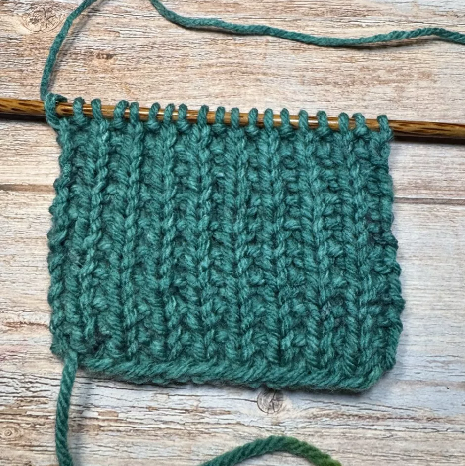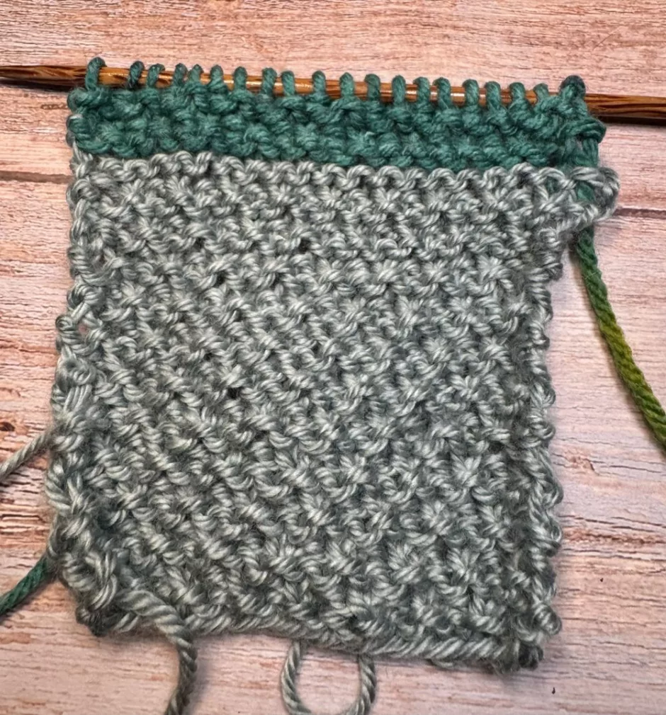 The four row version is what’s found in Barbara G. Walker’s Treasury of Knitting Patterns, and here at ODC we always defer to the matriarch, so that’s the version of sand stitch we are using.