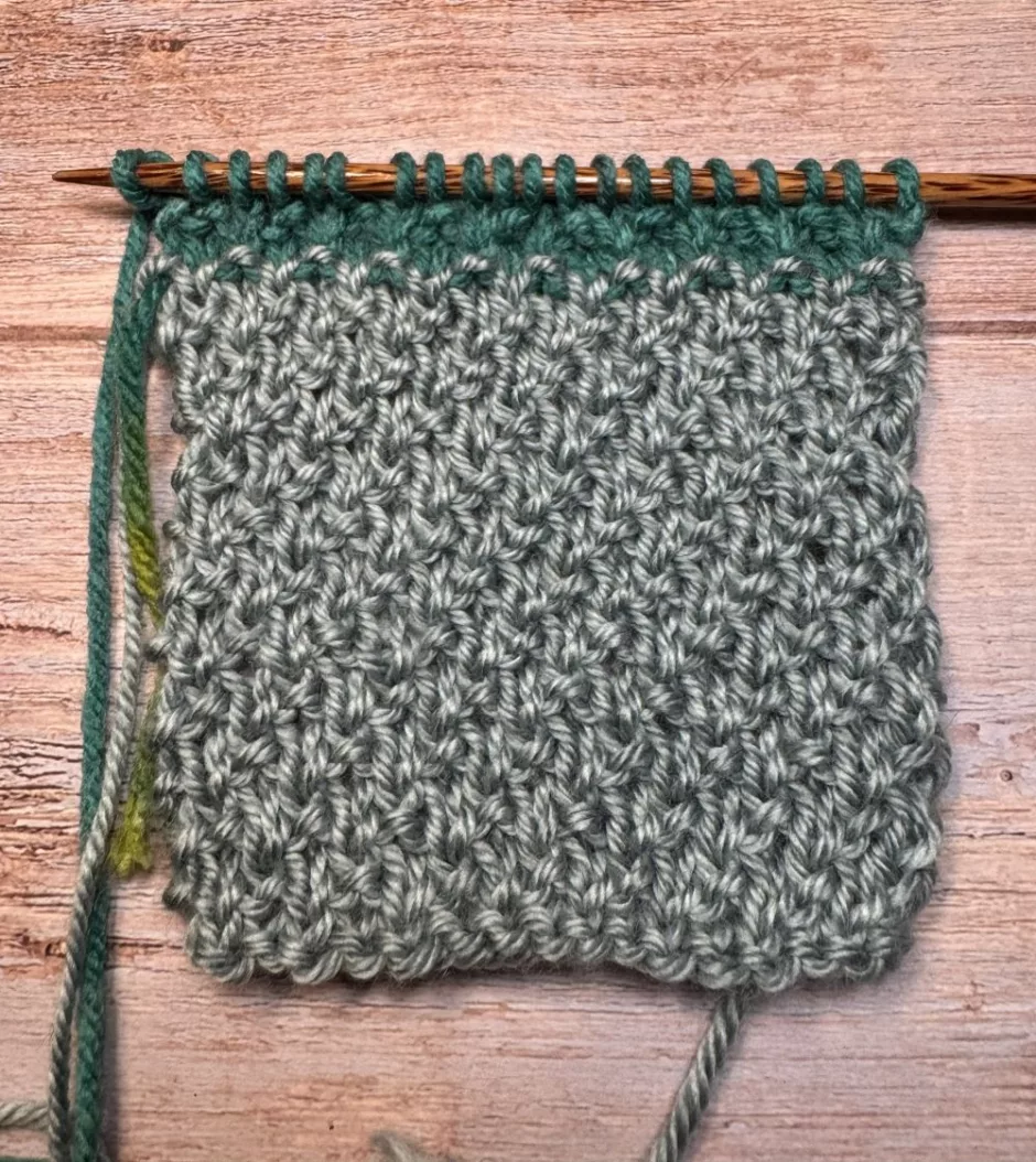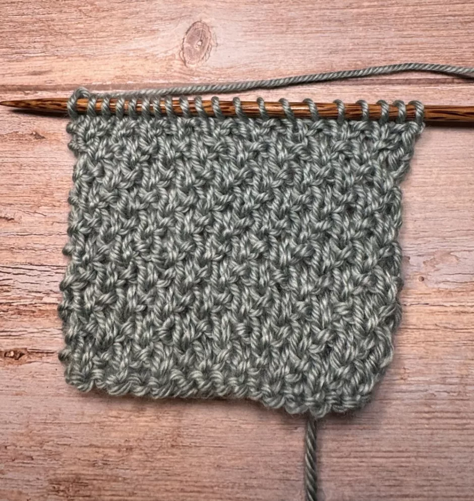 I saw a few different knitters make sand stitch into a two-row repeat, either knitting or purling the first row and then doing k1, p1 on the second row. Sometimes it’s worked on multiples of 2, and sometimes 2 plus 1 so you have a knit stitch on each end.