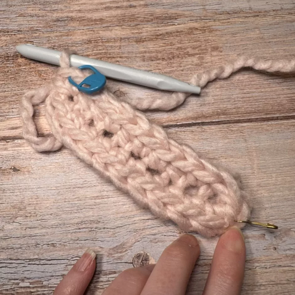 Work 9 rows in single crochet and fasten off, leaving a tail for sewing.