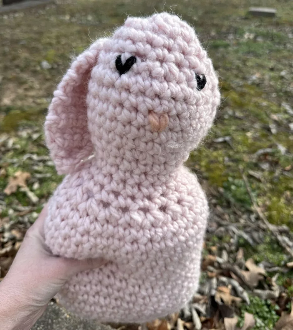 This easy crochet bunny pattern was a bit of a challenge for me to use as much of a ball of yarn as I could. I ripped it out multiple times but ended up with just 7 inches of yarn left, which was super satisfying. And the bunny is pretty cute, too.