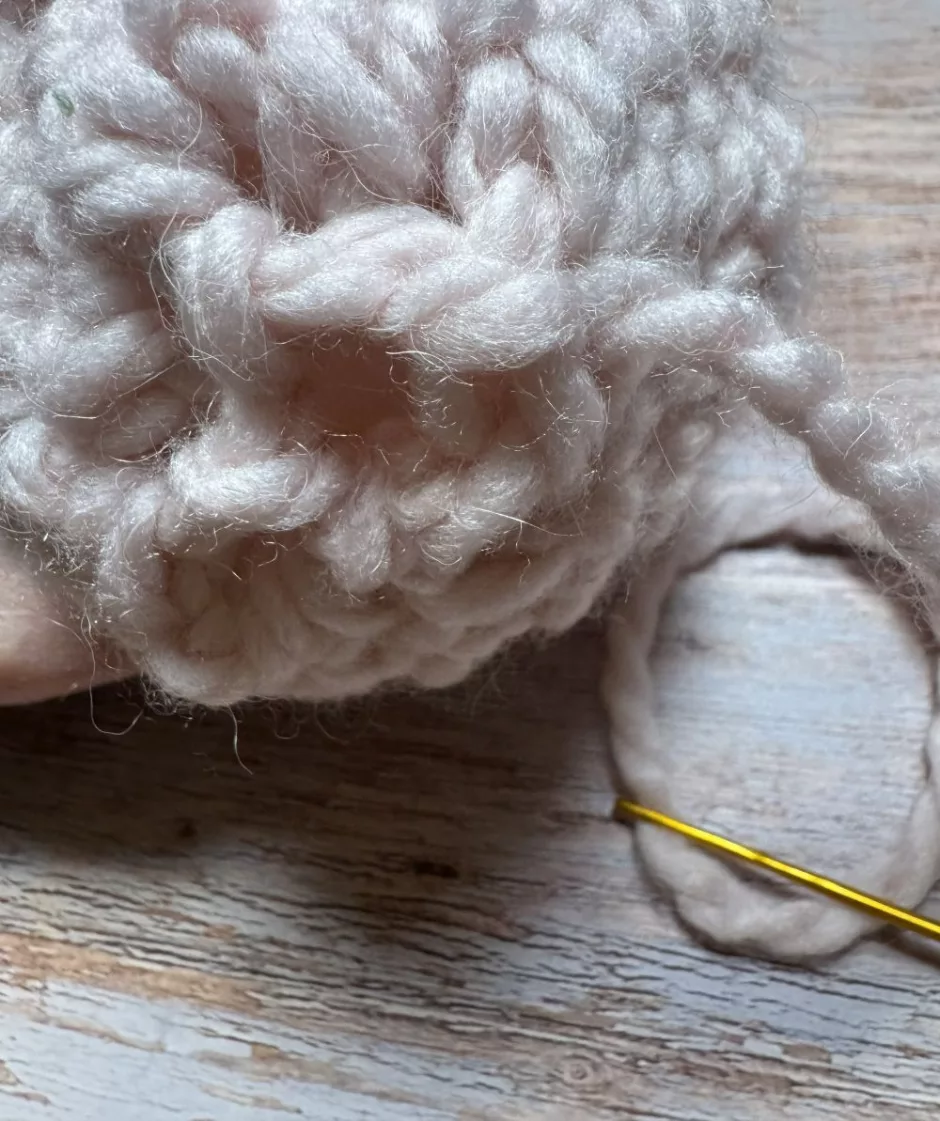 Cut yarn, leaving a long tail. Stuff the top of the head and sew it closed.