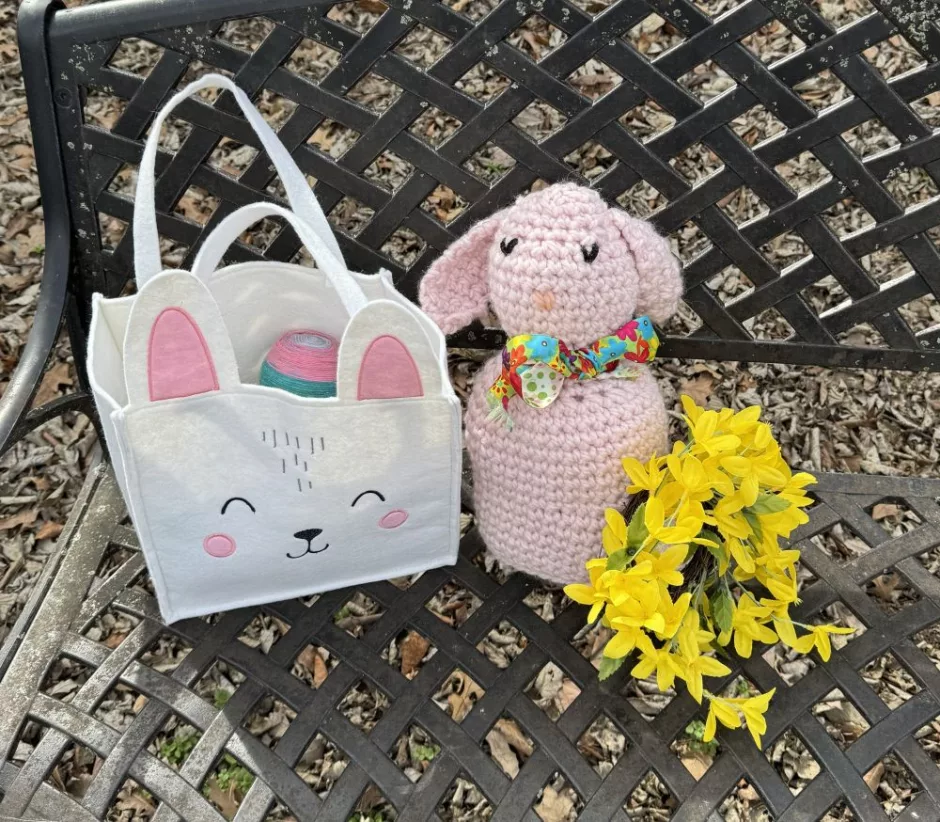 This crochet bunny was a lot of fun to make, and it’s super cute with a ribbon tied around its neck. You could also finger knit a scarf for it, or crochet a flower to put on it, or whatever other accessories you might like.