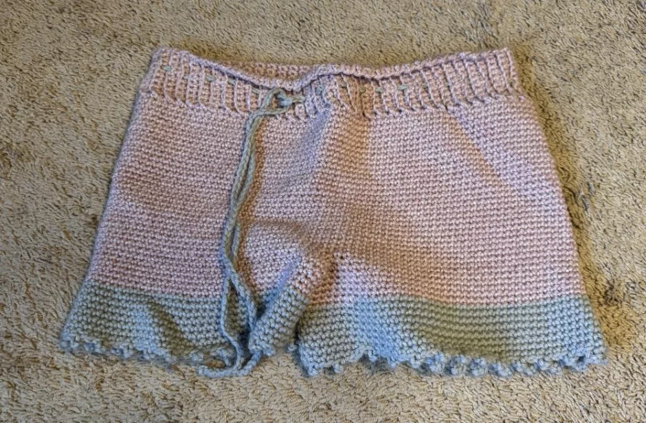 The same thing can be done to add elastic to crochet projects that need a little reinforcement. These shorts have a waistband that’s probably a little bigger than it should be, and even with the addition of a tie they feel like they get saggy.