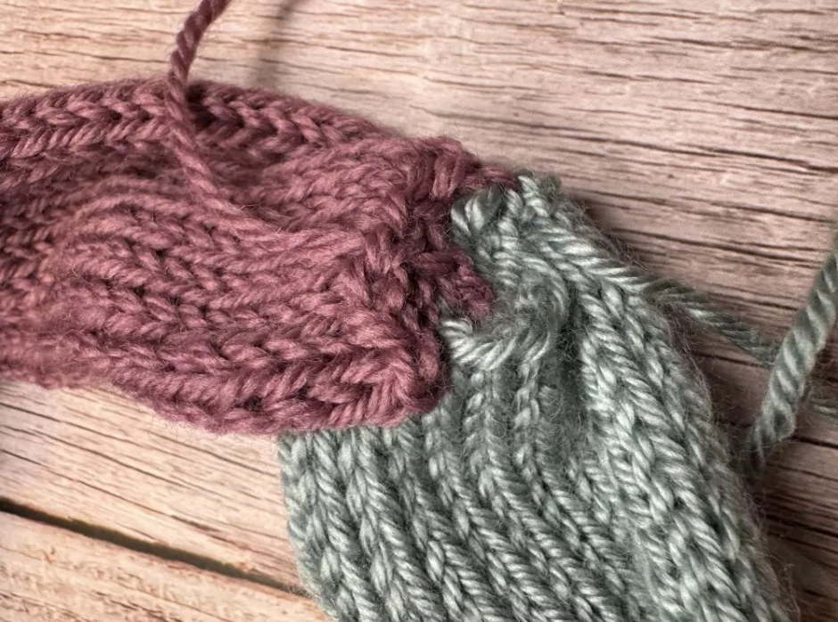 Knit to desired length, or about 22 inches/55.8 cm. If you want to knit two colors, knit half the length (that’s 11 inches/almost 28 cm) in the first color, then change to the second.
