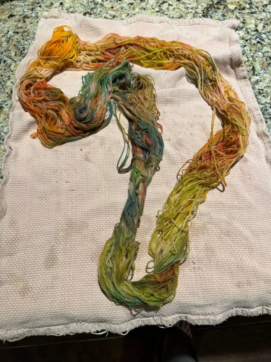 I didn’t totally cover the yarn but this was how it looked when I was out of dye.