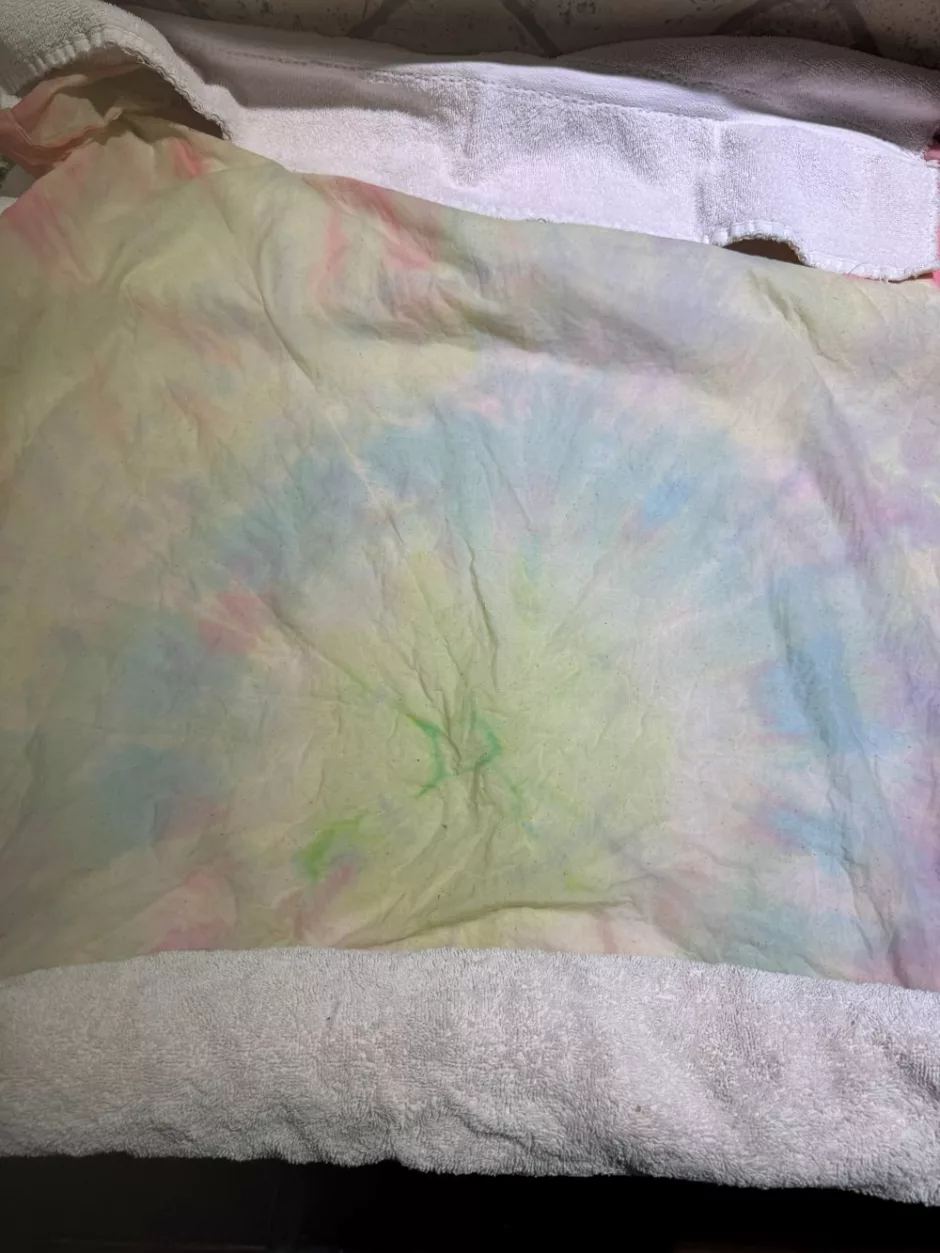 For the rest I poured dye onto the fabric and was surprised to find it didn’t always soak in immediately, so this was a slower process than I expected. Adding water to the fabric first didn’t seem to help much.
