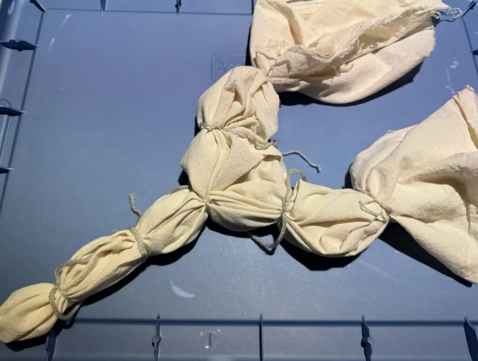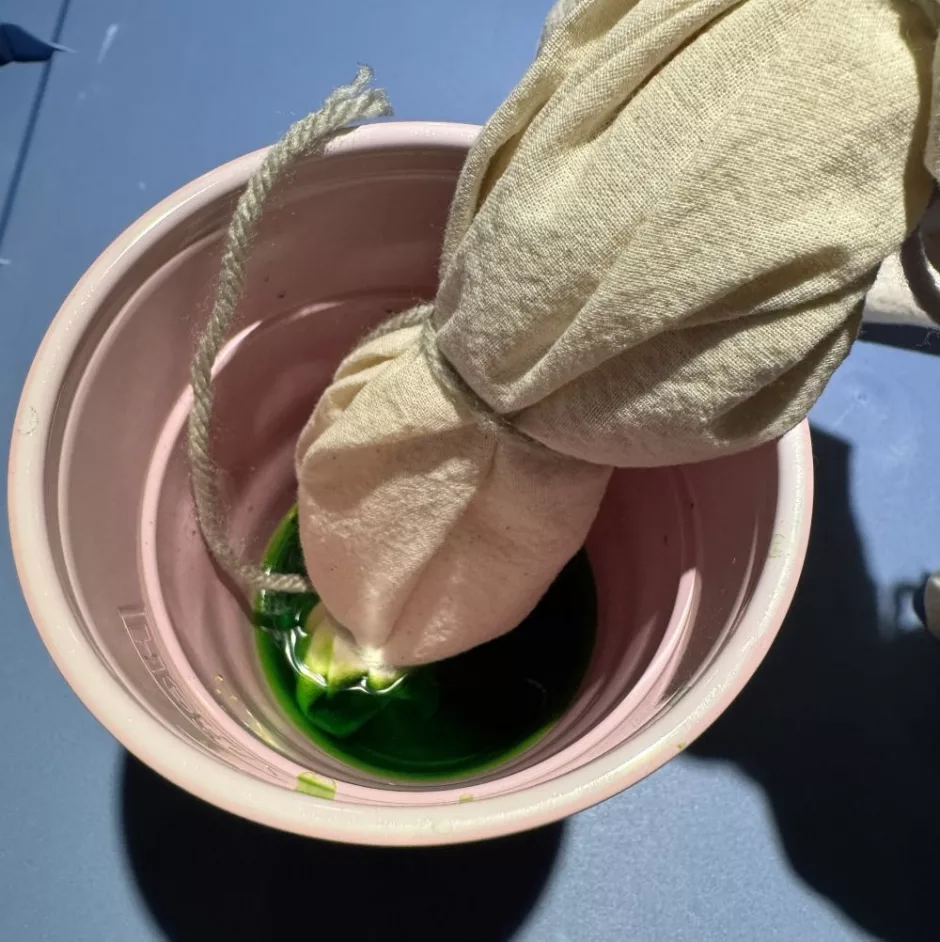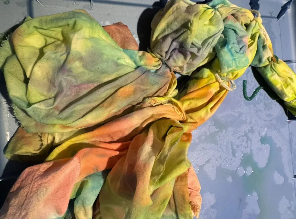 For the smaller pieces of fabric I just wadded them up and stuffed them in the cups I had the dye in.