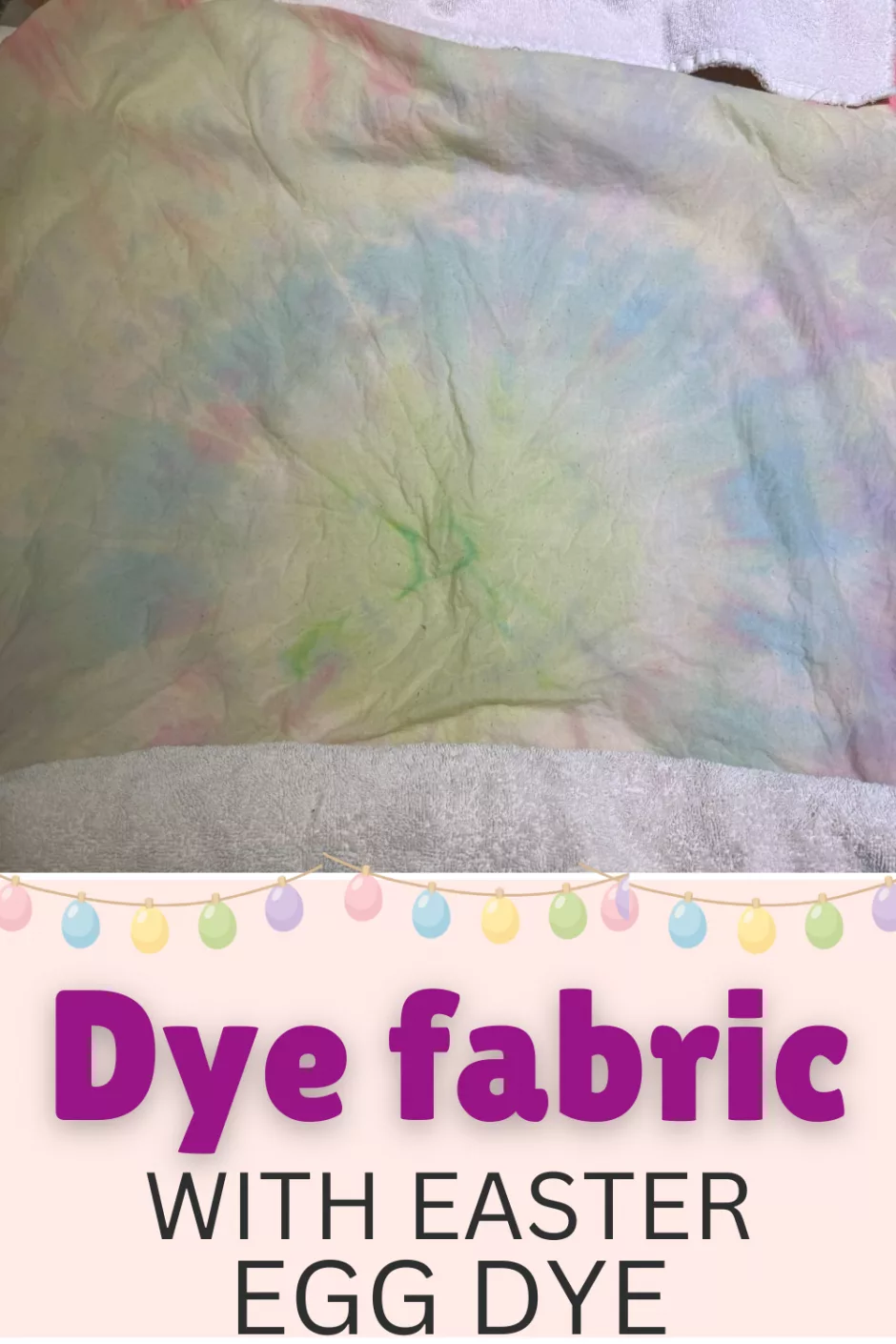 I did my Easter egg dye project with muslin fabric, which is cotton. Natural fibers are your best bet for dyeing with Easter egg dye as special chemical processes are needed to dye polyester and other man-made fibers.