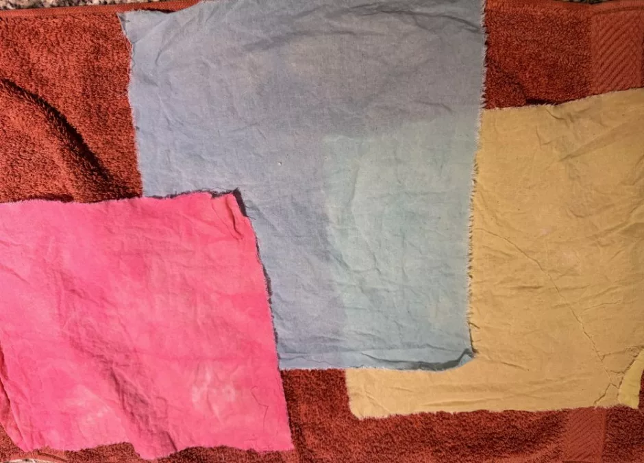 You don’t need to do anything special to prepare fabric for dyeing. I happened to have a yard of whole cloth and three small pieces that are about 11 by 9 inches (28 by 23 cm or so).