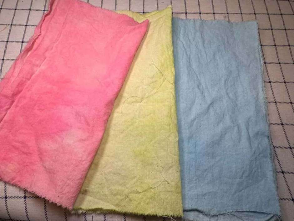 I did my Easter egg dye project with muslin fabric, which is cotton. Natural fibers are your best bet for dyeing with Easter egg dye as special chemical processes are needed to dye polyester and other man-made fibers.