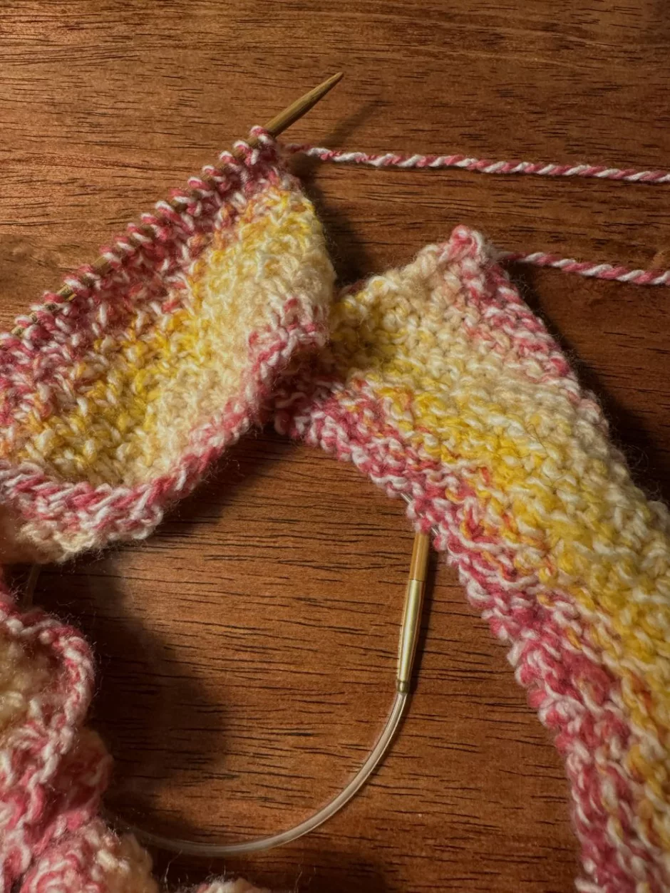I used one ball of Bernat Sport Ombre Twist, which, according to the ball band, is 1,011 yards (924 meters) and a light/DK/yarn weight 3. This color is called Sorbet.