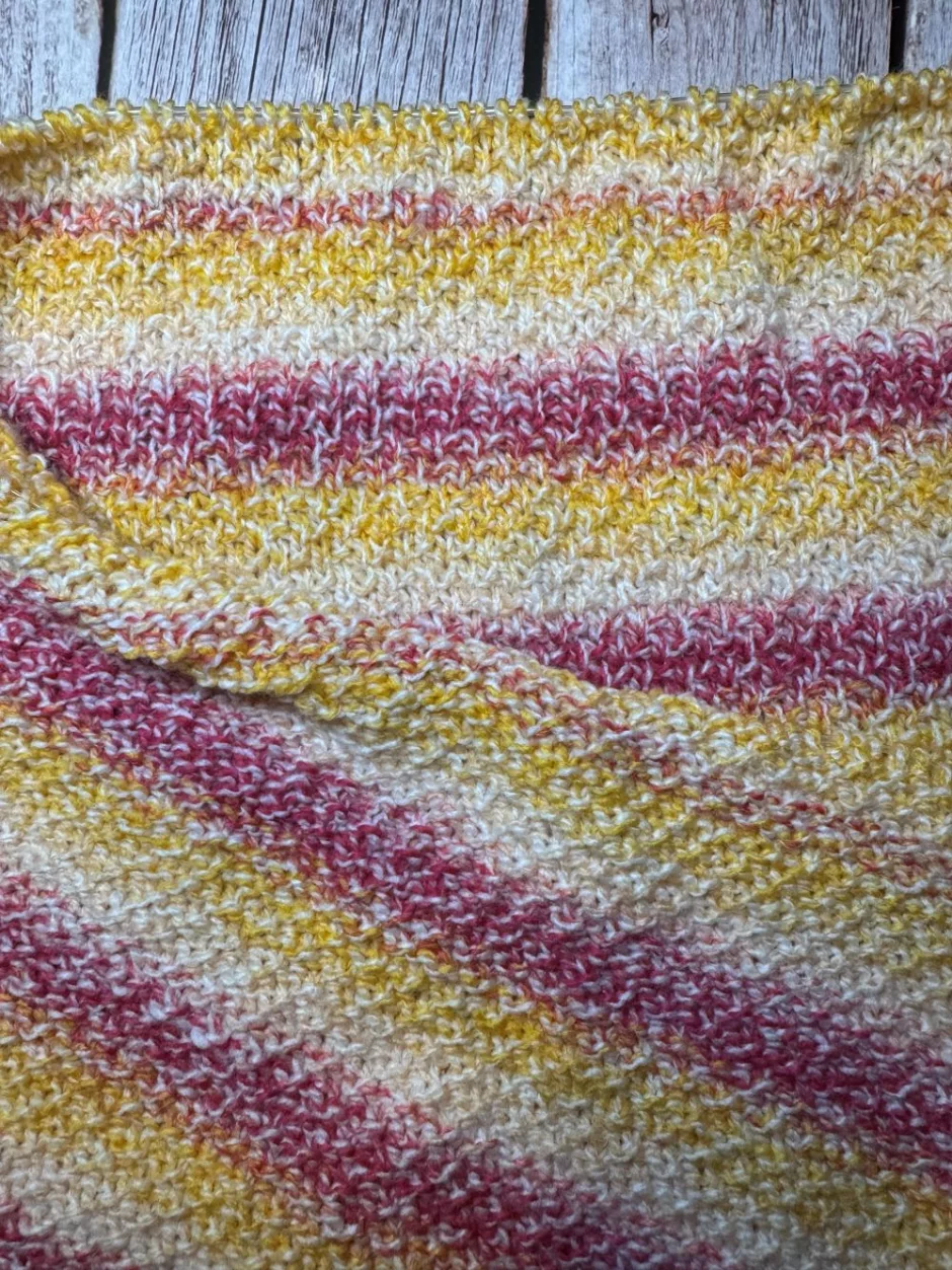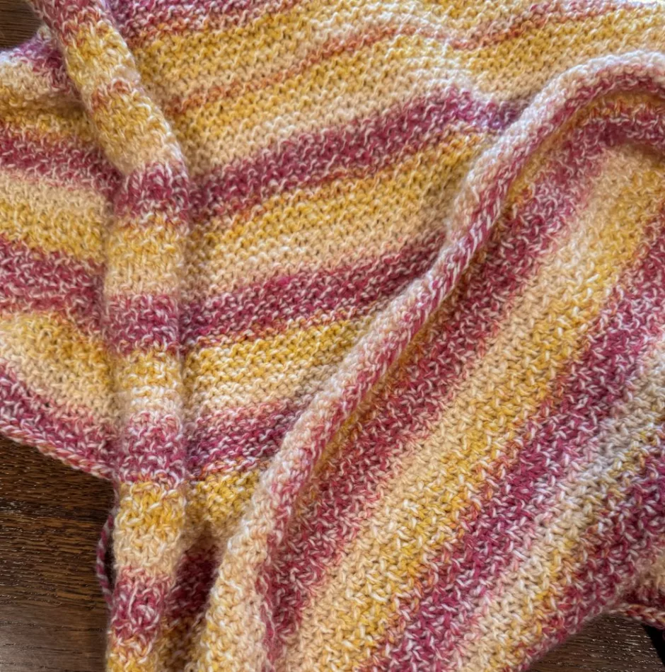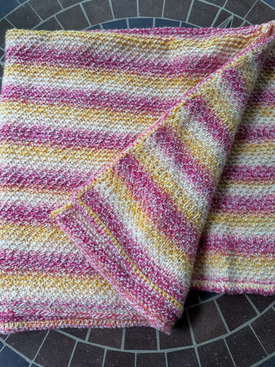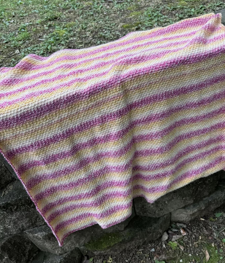 Though this stitch pattern isn’t quite stockinette, I did find it had a bit of a tendency to curl, so both adding a border and washing your blanket and letting it lie flat to dry (pinning the edges if they still aren’t lying flat) will be helpful.