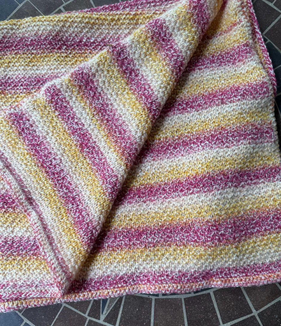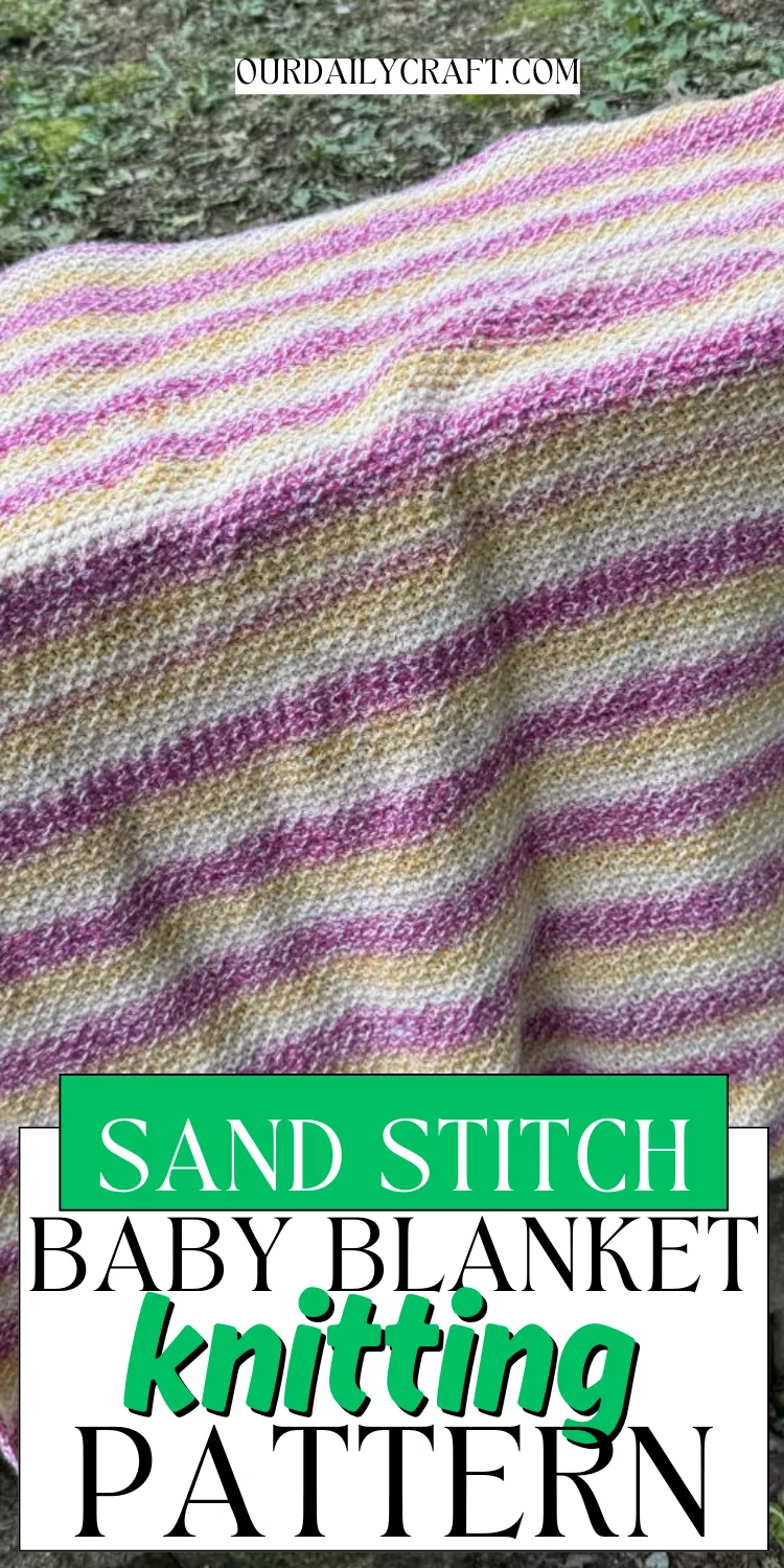This sand stitch baby blanket knitting pattern is easy to stitch in sand stitch, a four row repeat of knits and purls that looks good on both sides.